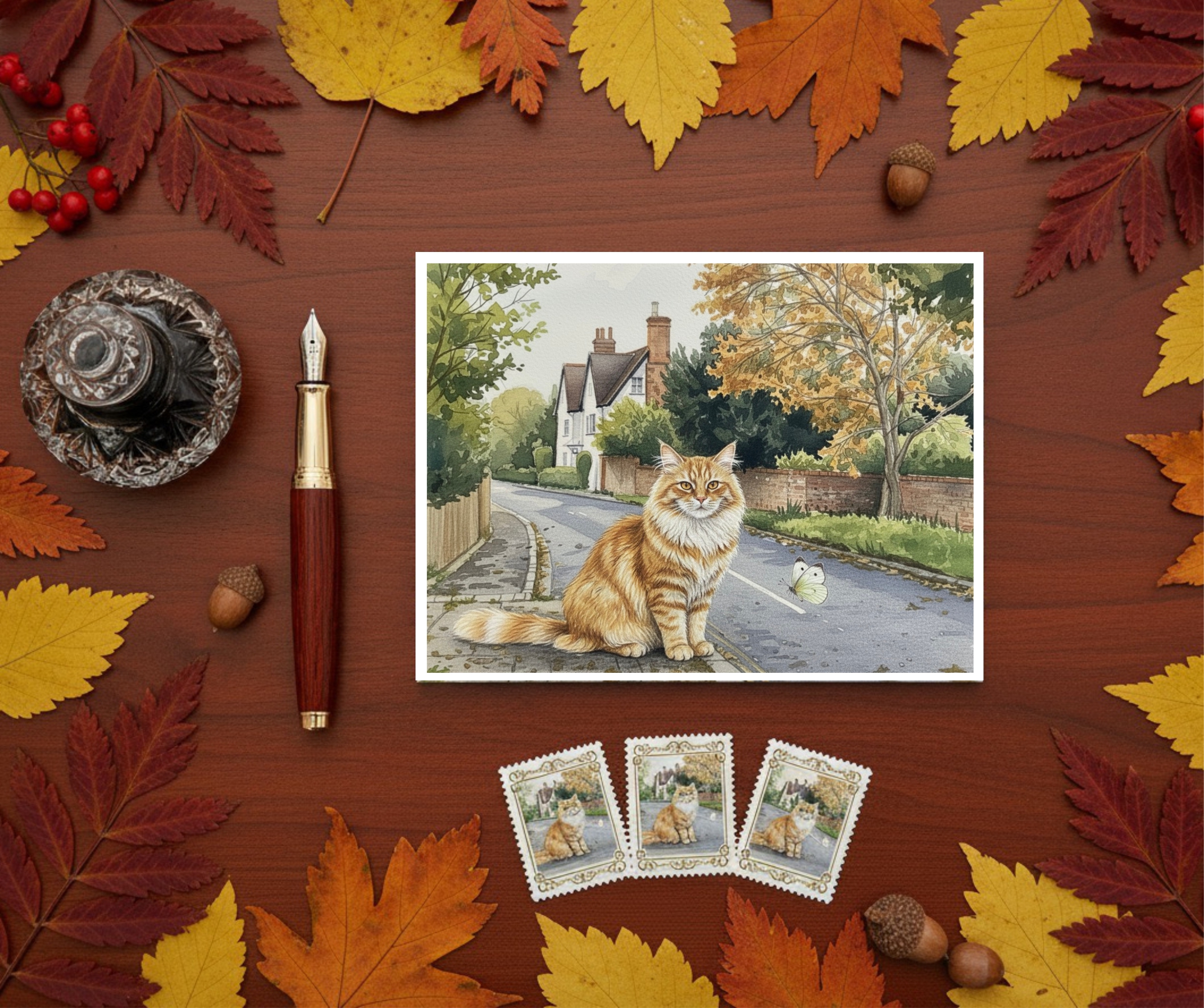 The Site Of John Bunyans Cottage In Elstow Near Bedford Greetings Card With Ginger Tabby Cat