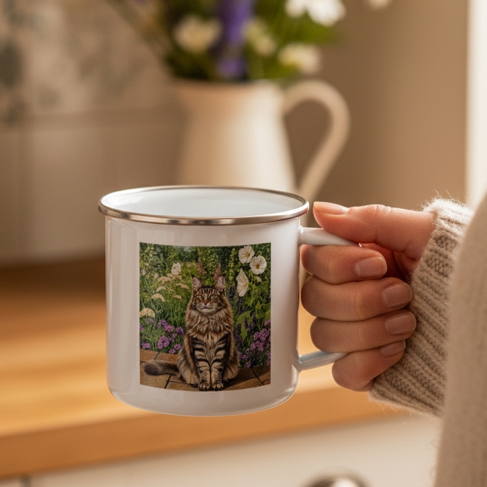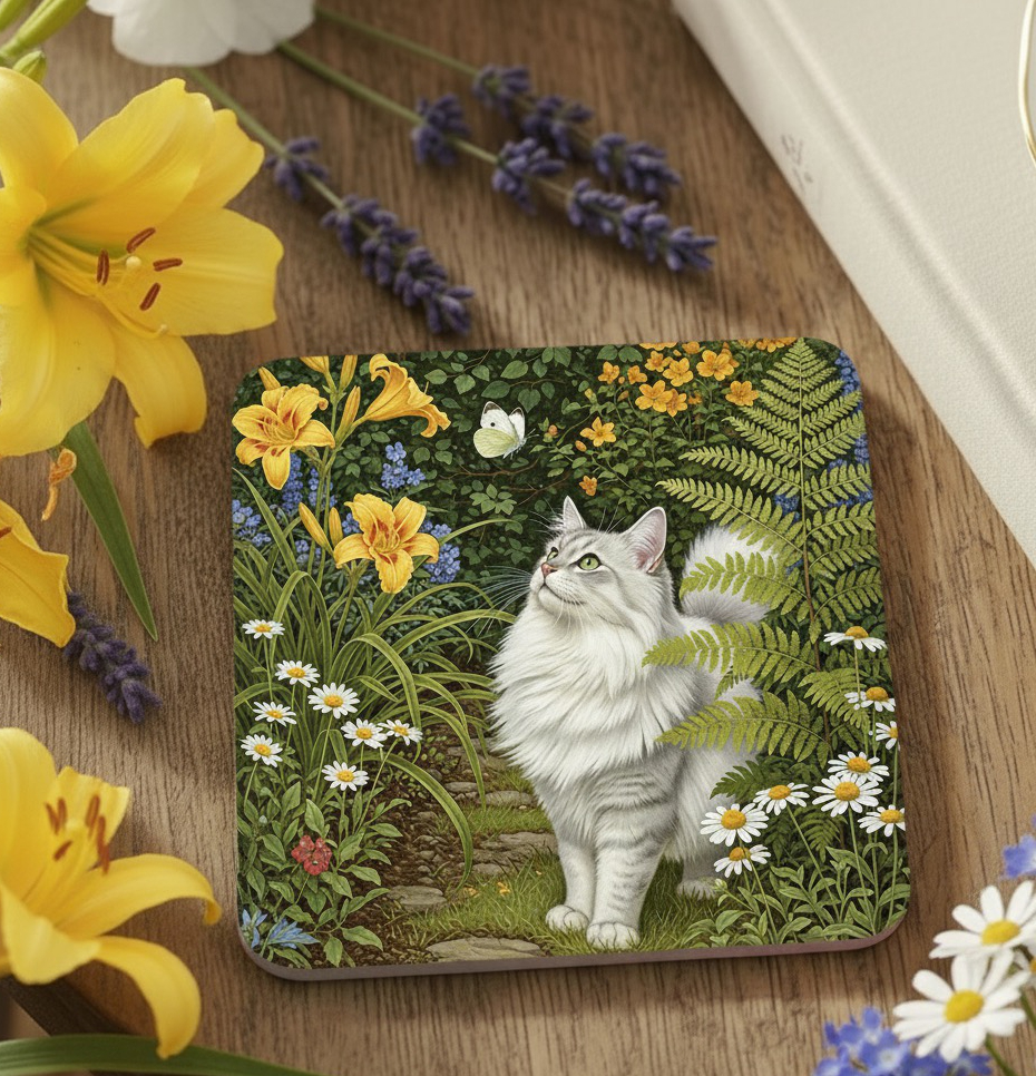 Welcome to the visually stunning world of the “Cat Whiskers & Bloom Collection” – a delightful range designed specifically for those who appreciate the beauty of our four-legged friends, intertwined with the serenity of a blossoming garden. Imagine graceful illustrations of cats and dogs, posed majestically in lush gardens, bringing a touch of sophisticated whimsy to everyday items.